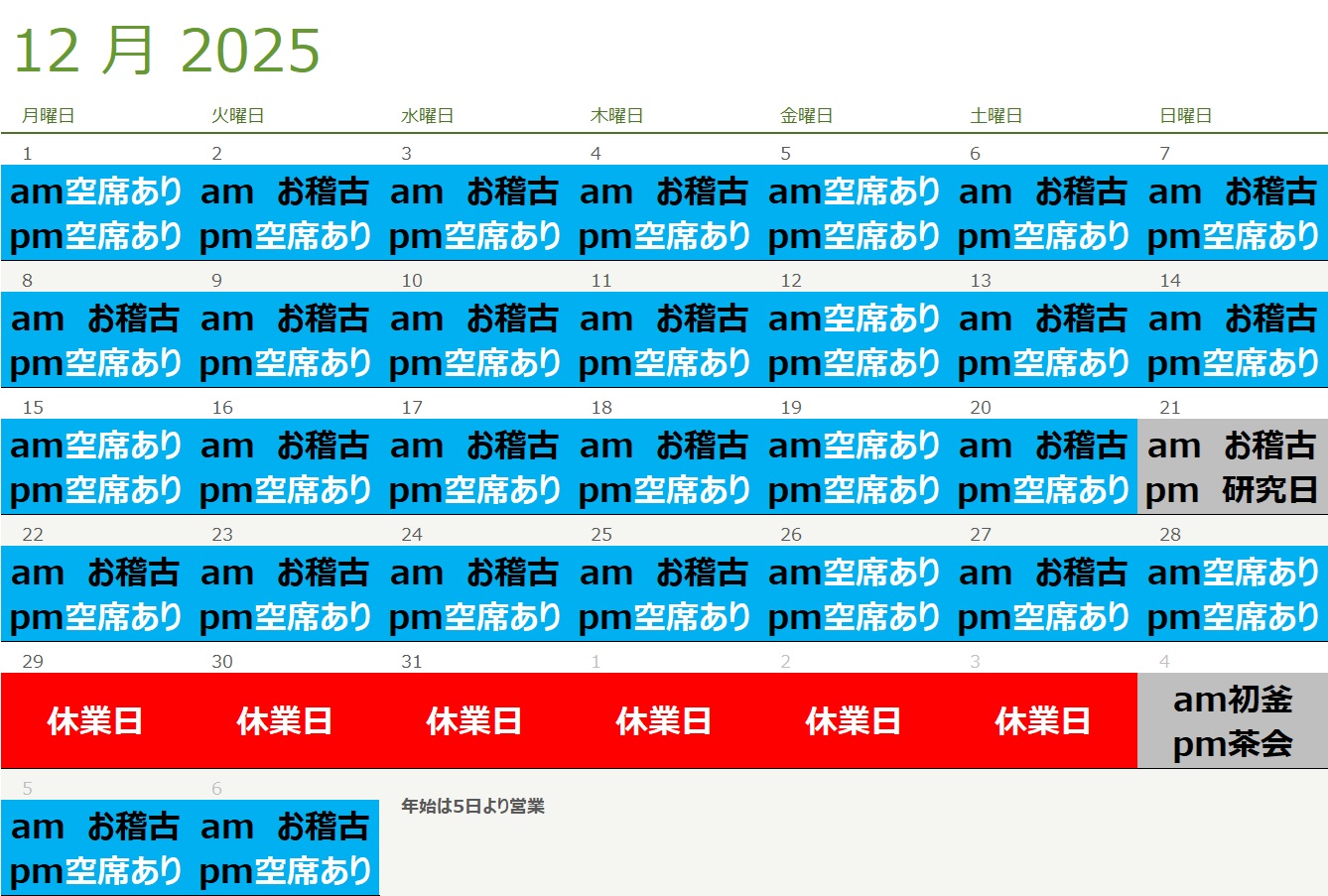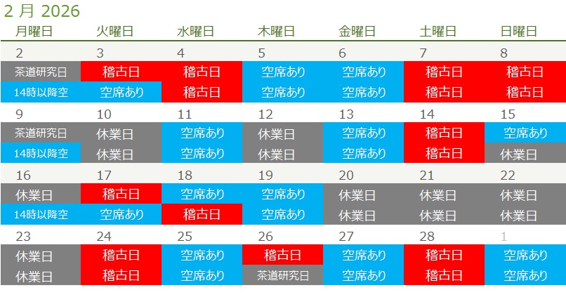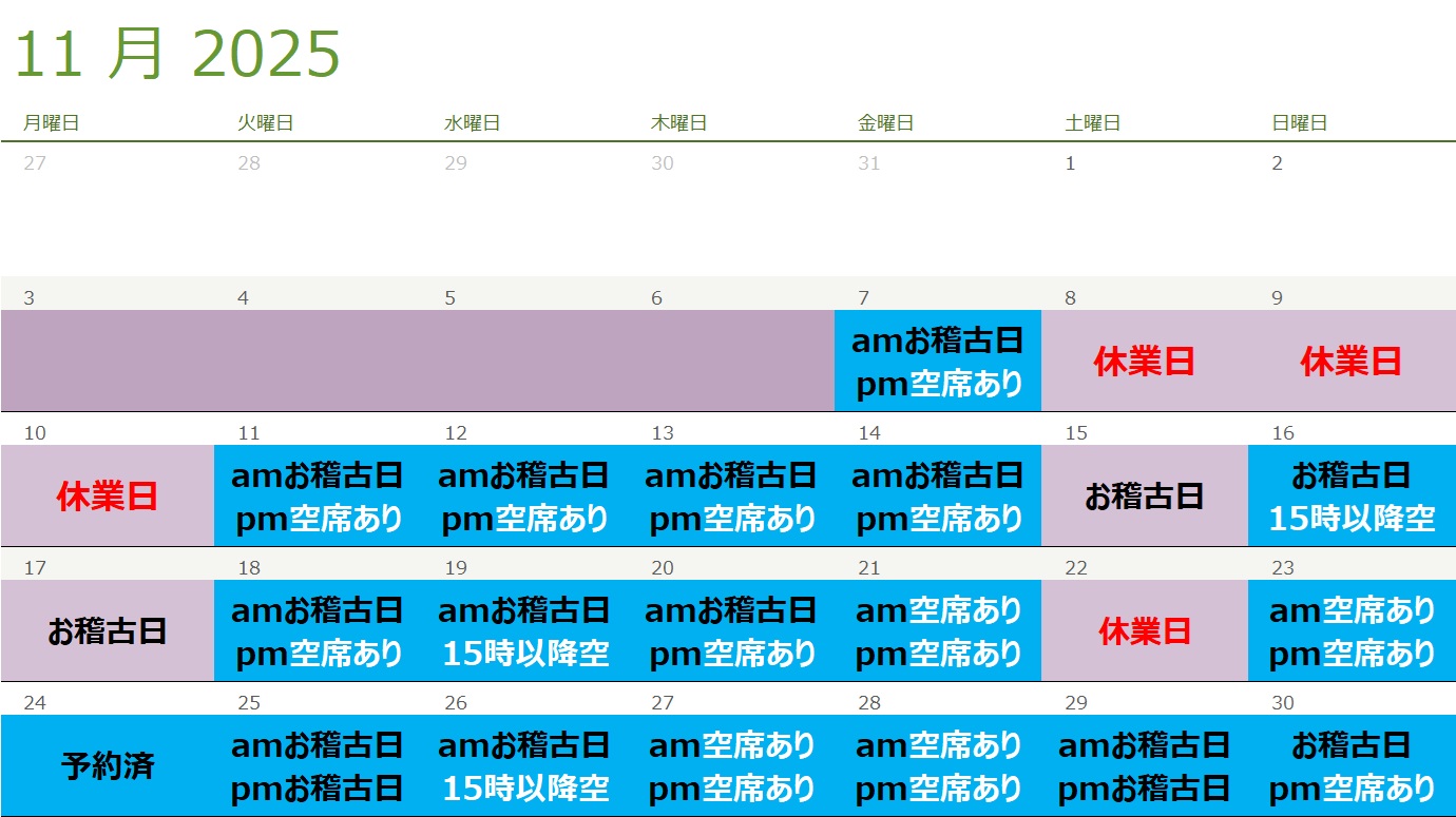 ※お稽古日(色セル)でも予約が可能な場合があります。